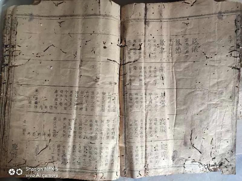 金鼎奎,今年76岁,他保管的家谱从来不给外人看,他说要看必须具备三个条件:一是必须是金姓族人、不能反党;二是金姓人不能害金姓人;三是必须能给金家办实事的人。否则,免谈,所以他保管的家谱从未有人看过。当他听到我们说要续全县金姓家谱时,才答应拿出来给我们看。据他介绍:此家谱是清同治丙寅年重刊,是他们鼻祖开卷公从通山用背笼背回来,当时家谱共有13卷,文革期间破坏了8卷,是金鼎奎暗藏了5卷,放在岩石洞里,文革后才拿回家中,但是,由于年代已久,岩洞潮湿,鼠虫叮咬,损坏了不少,现仅存5卷已是残缺不全。经查对,金鼎奎他们这一支系属文德祖千三公的后裔,始迁祖开卷公,迁郧西无考,根据迁郧西第三世高亮公墓碑记载,迄今约有200余年,现居住钱盘子村有金氏近200余人。当时,他们还挑了两尊老爷,也在金鼎奎家保存至今。为了严谨求证,随后,我们又去了金家祖坟院,查看了至今保存完好的高亮公(讳萬明)墓碑,墓碑记载为:祖籍湖北武昌府通山县第三都迁郧阳府郧西县五顶双掌堡钱盘子居住。通过查对家谱、墓碑和金鼎奎一起交流,该支系属文德祖千三公后裔,还发现了信公也属文德祖兄弟文行祖千一公支系,为我们今年编写《金姓家谱》(追根溯源记实)奠定了坚实的基础。临别时,与金鼎奎及家人合影留念,并同意我们将家谱带回郧西暂存。下午四点,我们回到郧西,又来到湖北省金氏宗亲联合会副会长金荣明办公室,和金荣明副会长一起研讨了家谱记载的有关史料,就信公属于文行祖千一公这一支系进行査对,寄希望进一步与崇阳对接考证。